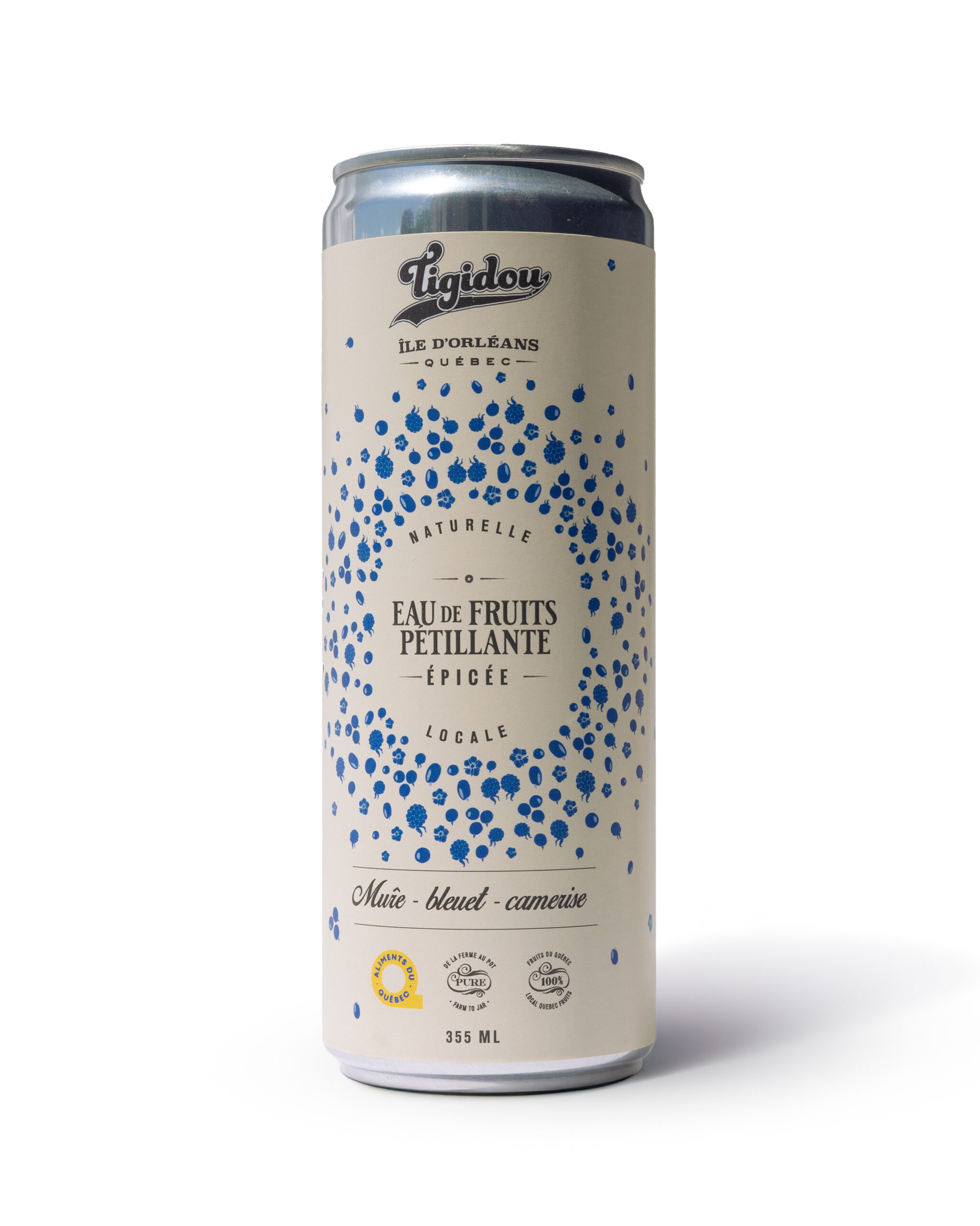 - 2 spicy sparkling fruit waters with blueberry, blackberry and haskap.