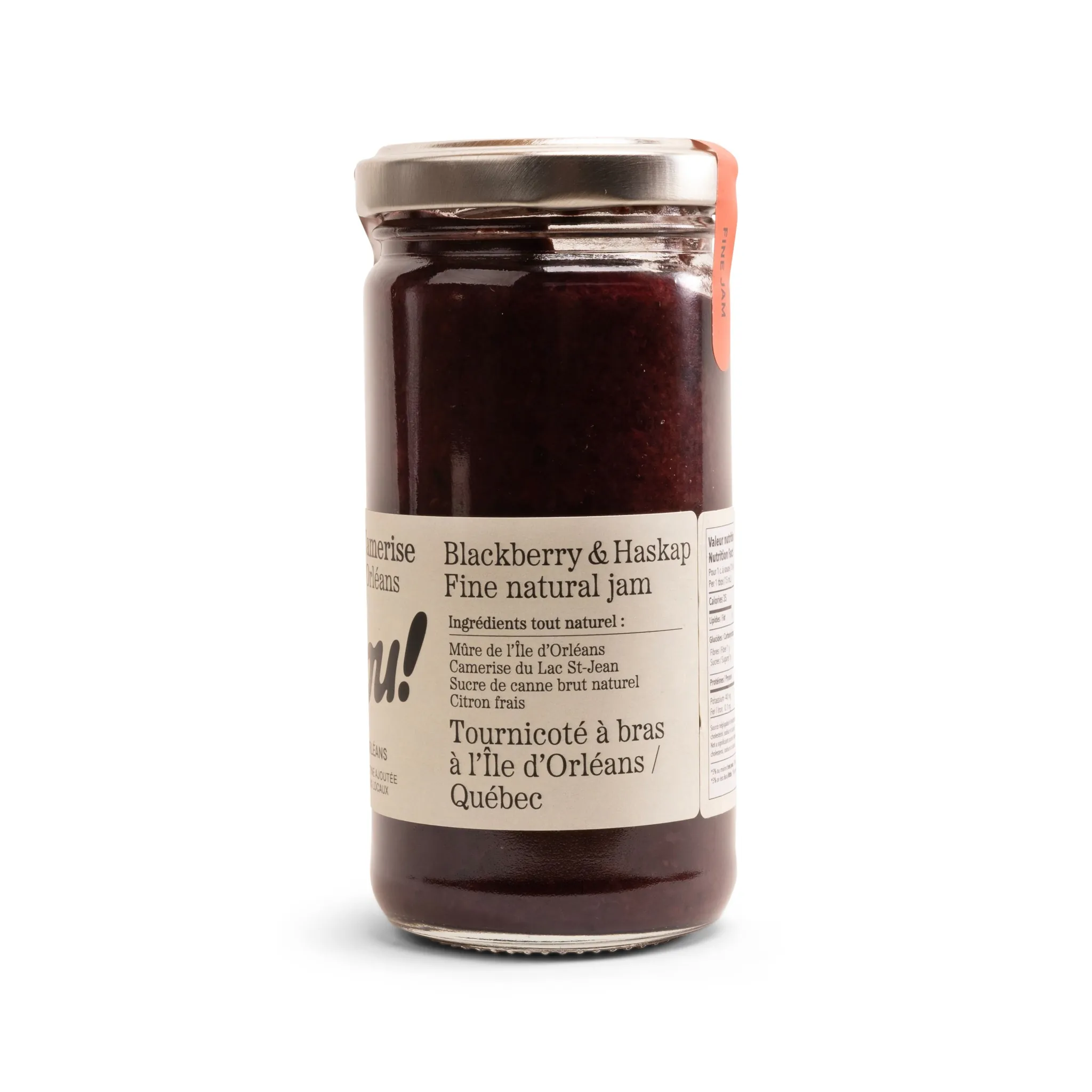 Artisanal blackberry and honeyberry jam from Île d’Orléans made with organic cane sugar and fresh lemon juice.