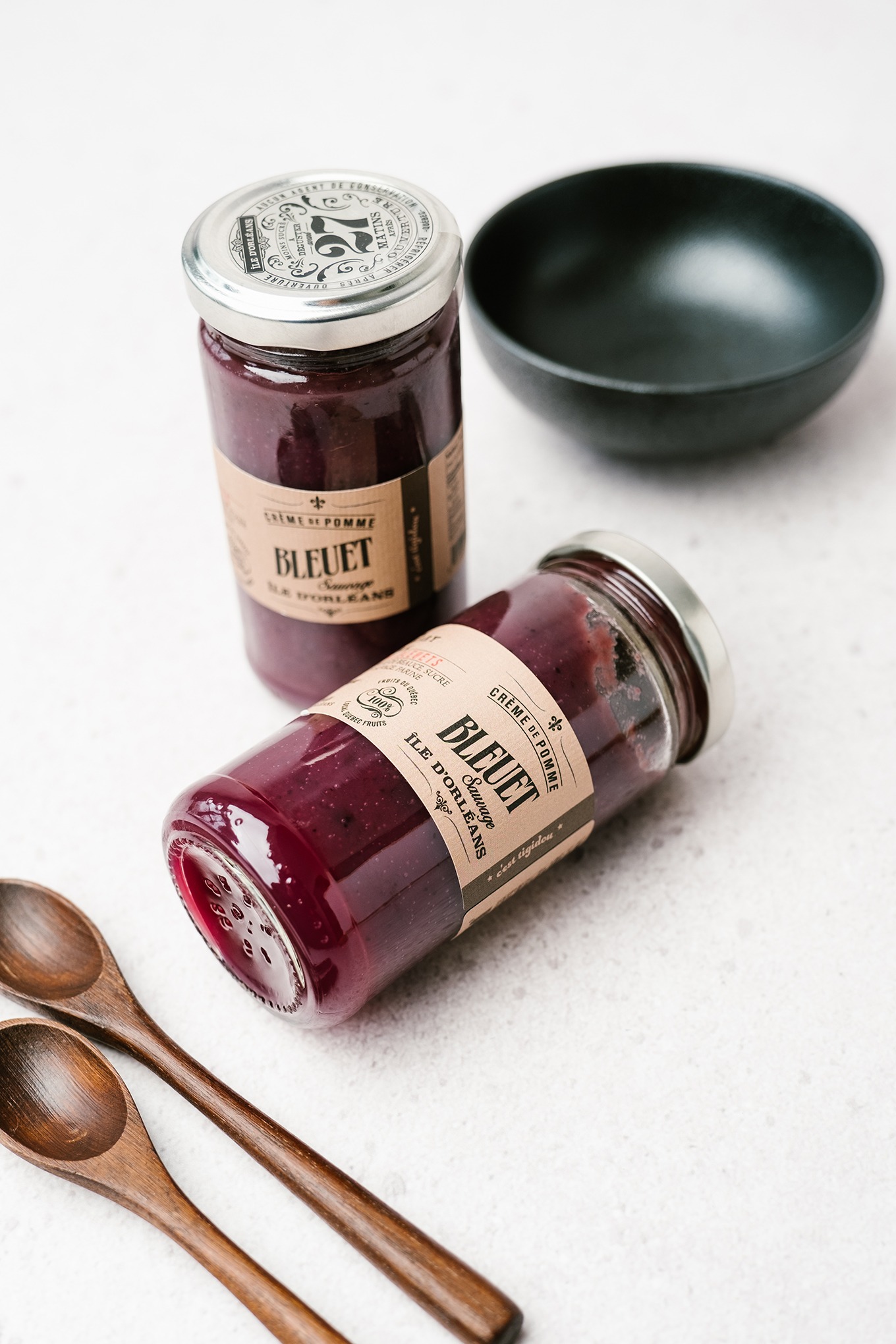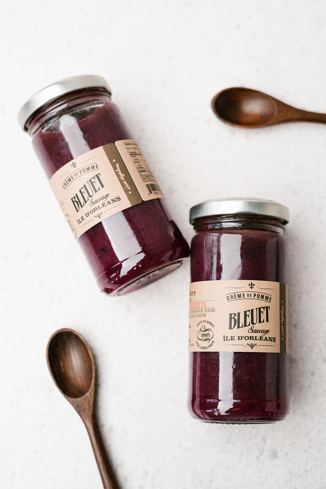 Crème de pomme artisanale aux bleuets sauvages et aux pommes de l’île d’Orléans.