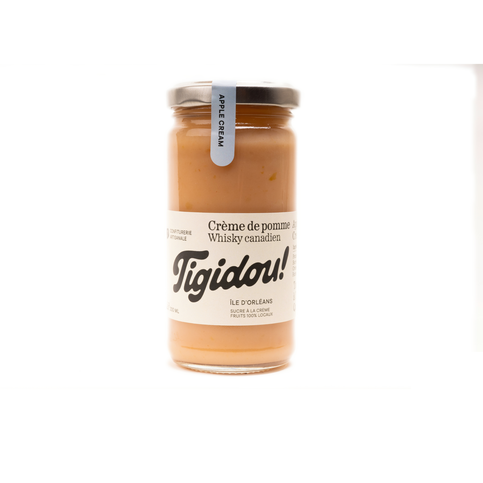 | Ingrédients | Pomme de l'île d'Orléans, sucre de canne biologique, crème fermière, farine biologique, whisky canadien, arôme naturel. |