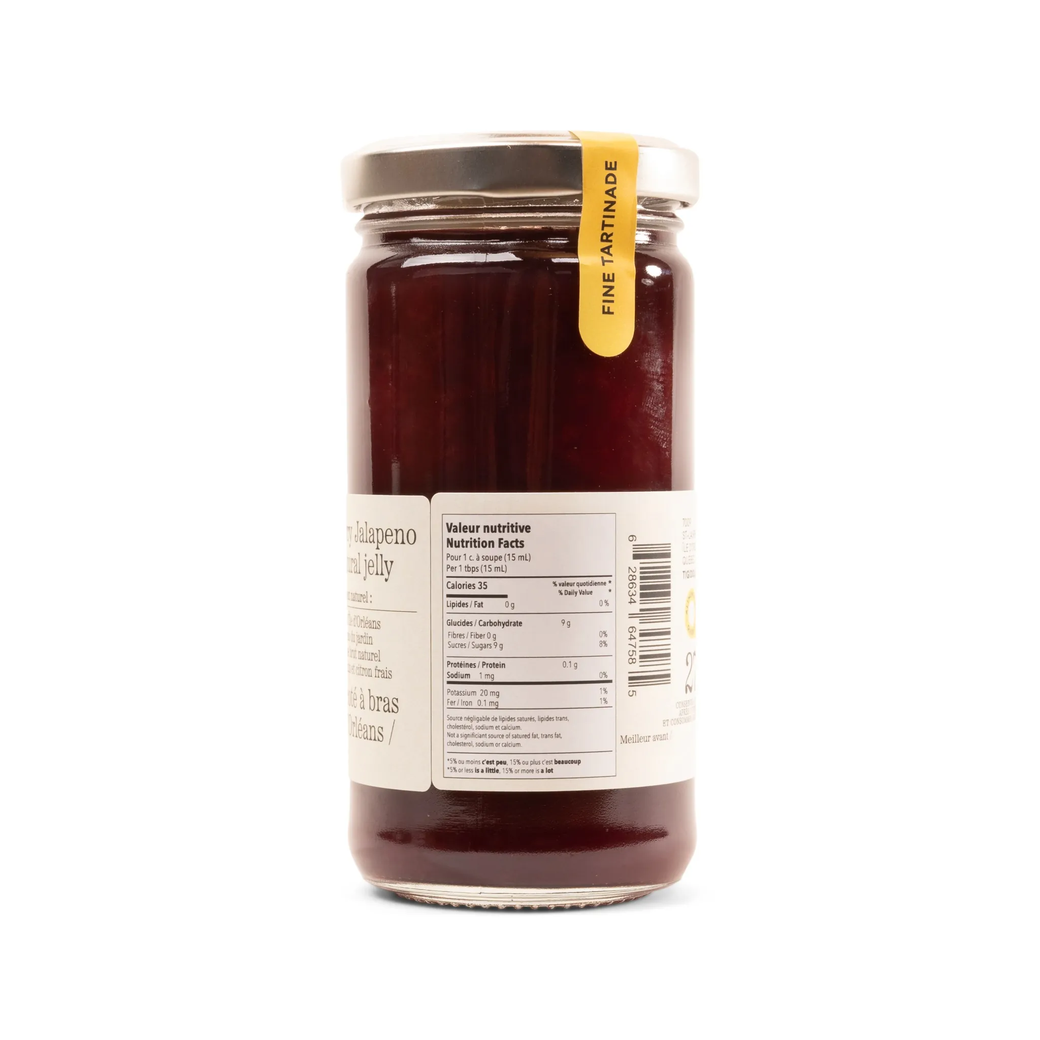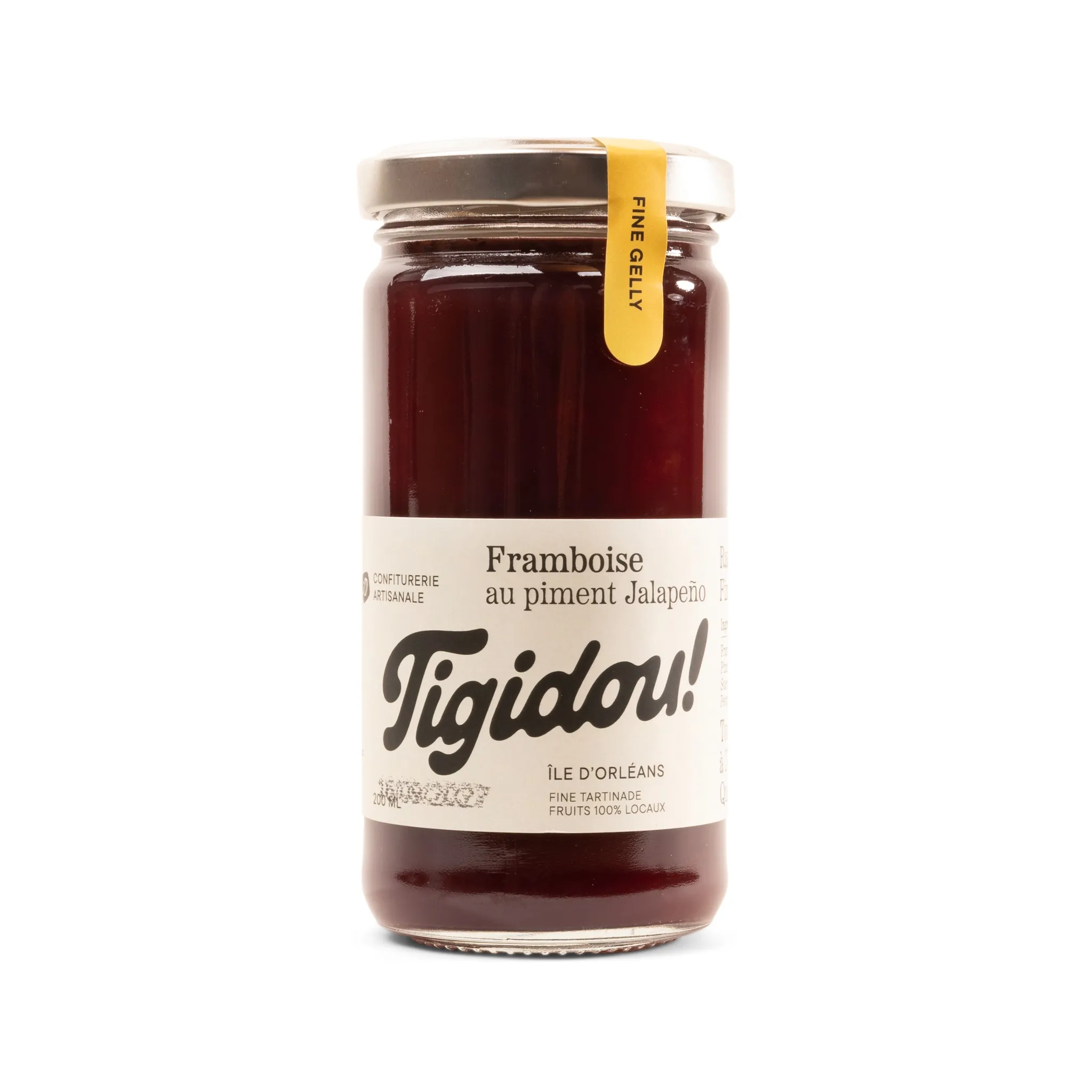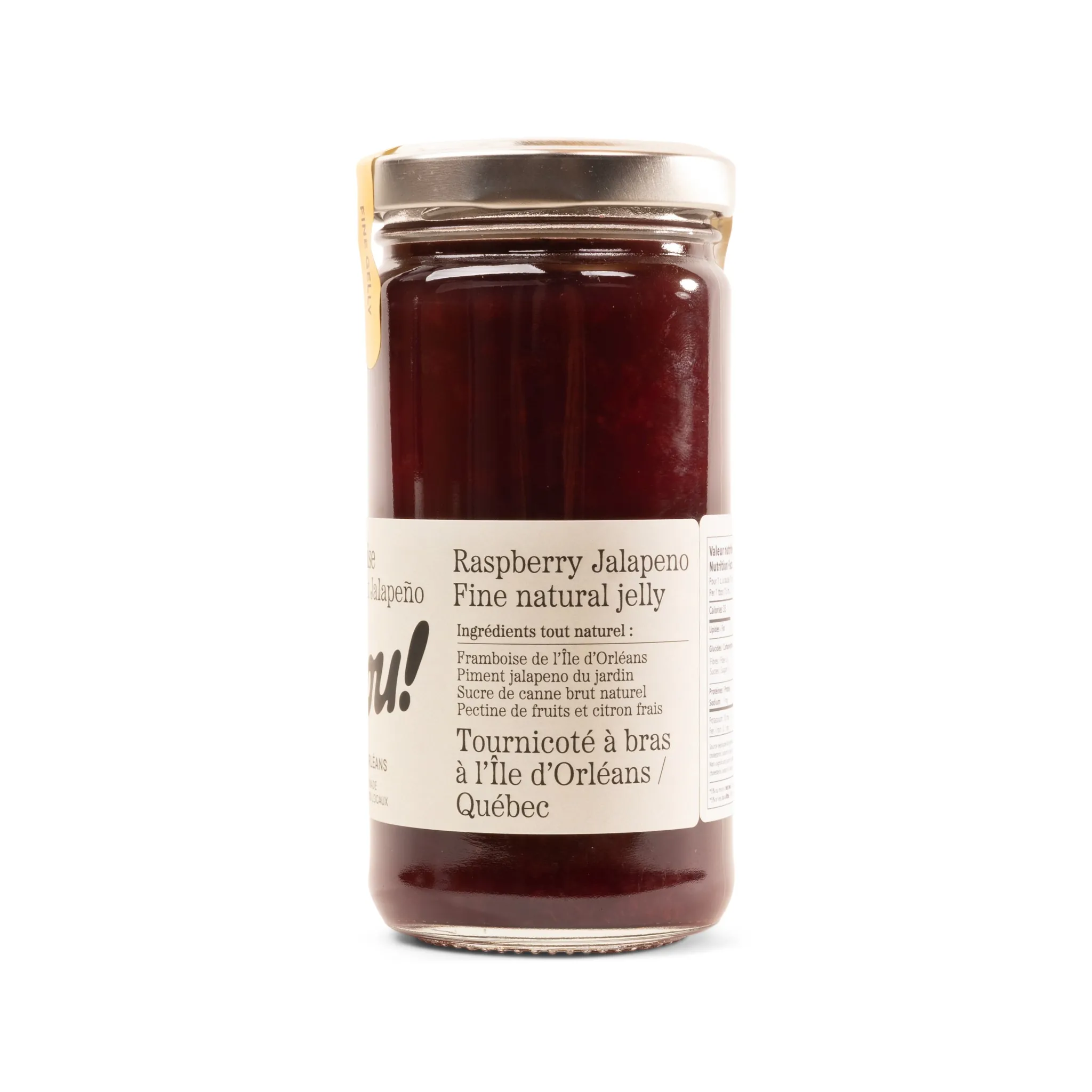 Gelée de fruit artisanale aux framboises de l’île d’Orléans et au jalapeño du jardin.